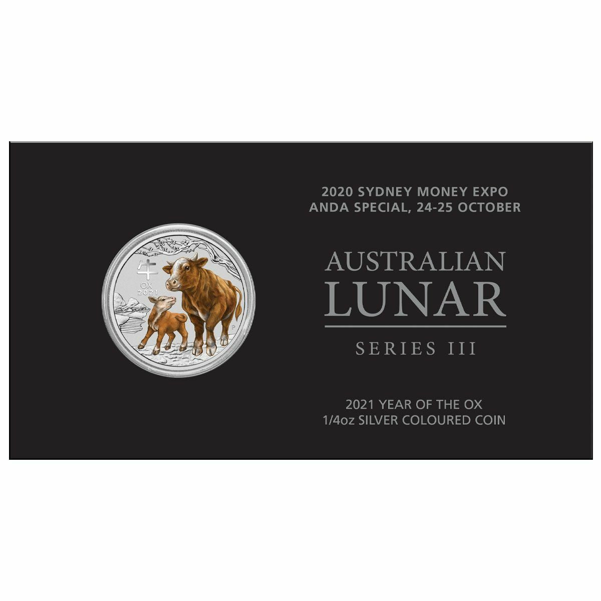 2021 25c Lunar Year of the Ox Colour 1/4oz Silver BU Coin - Sydney Money Expo