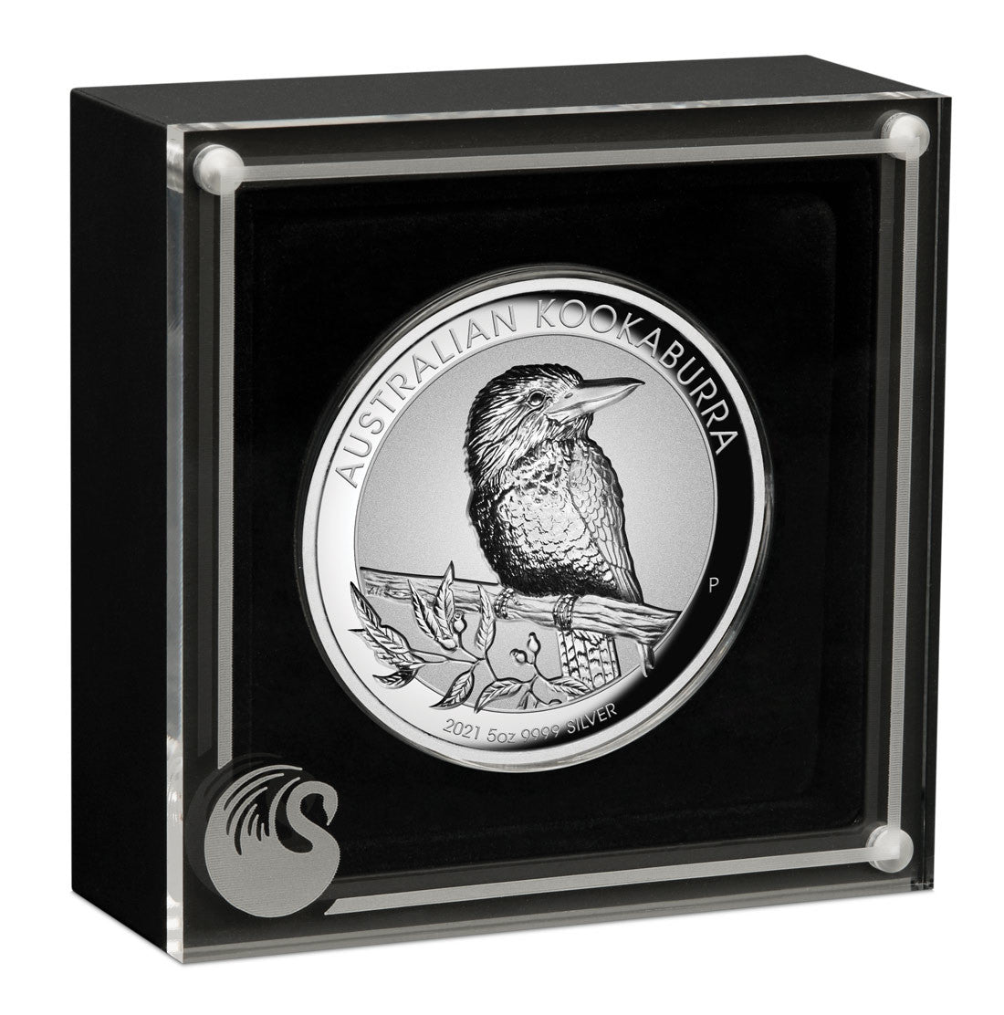 The coin’s design depicts a representation of a kookaburra perched on a branch of a gum tree with leaves and seedpods. The reverse also includes the inscription AUSTRALIAN KOOKABURRA, The Perth Mint’s ‘P’ mintmark, and the coin’s weight, purity and 2021 year-date.