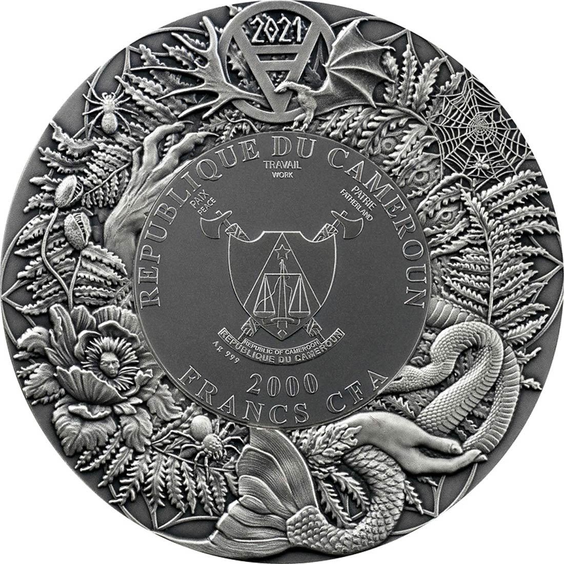 2021 Cameroon 2000 Francs 3oz Antique Coin - Slavic Bestiary - Rusalka