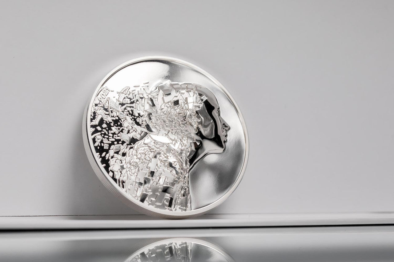 This 3 oz 50mm .999 silver coin interprets this dilemma of limited human capacity in a modern and abstract way.
