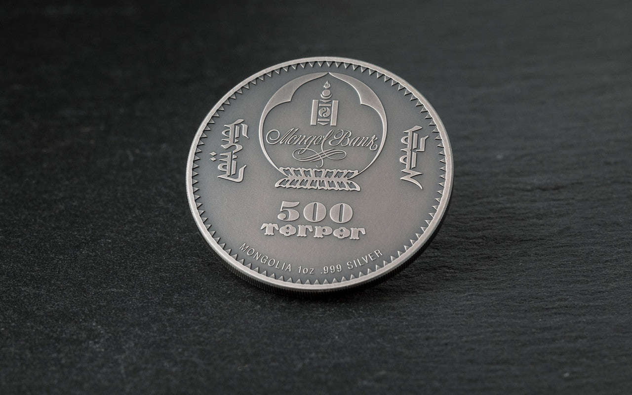 All previous releases of this series are sold out and we expect this one to go extinct as well! This 1 oz silver coin has a diameter of 38.61 mm and is limited to 999 pieces.