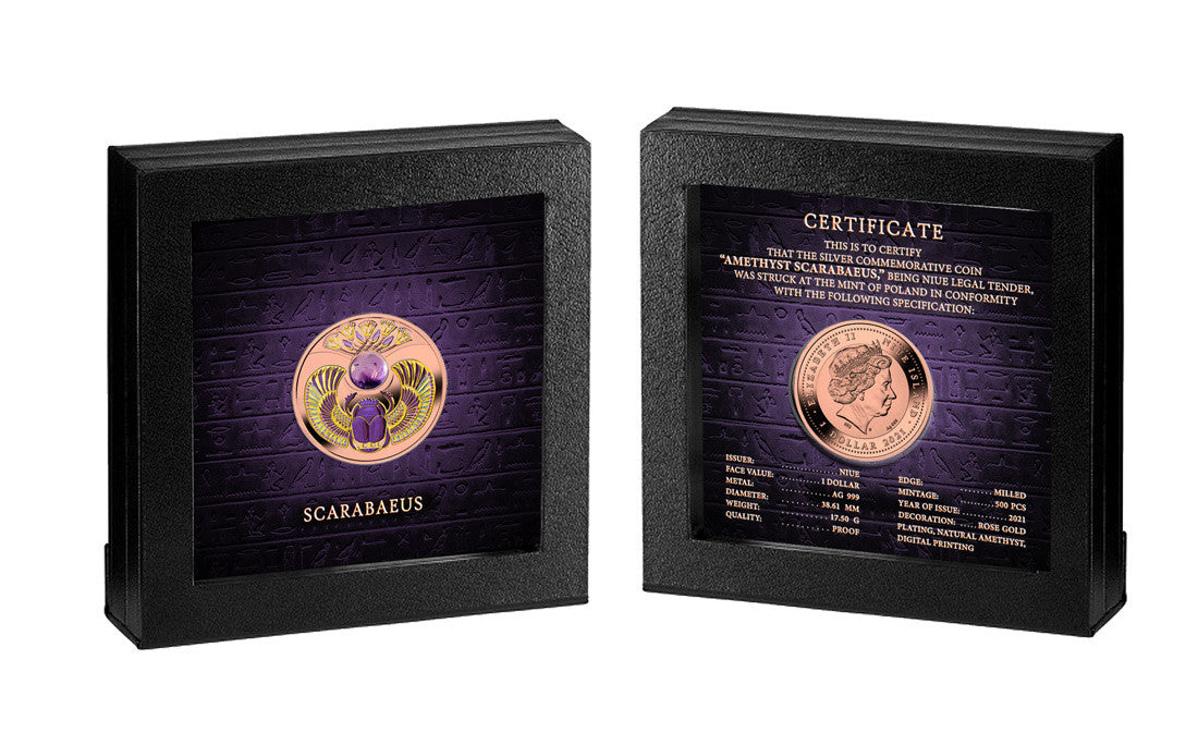 2021 Niue $1 Silver Rose Gold Coin - Amethyst Scarabaeus