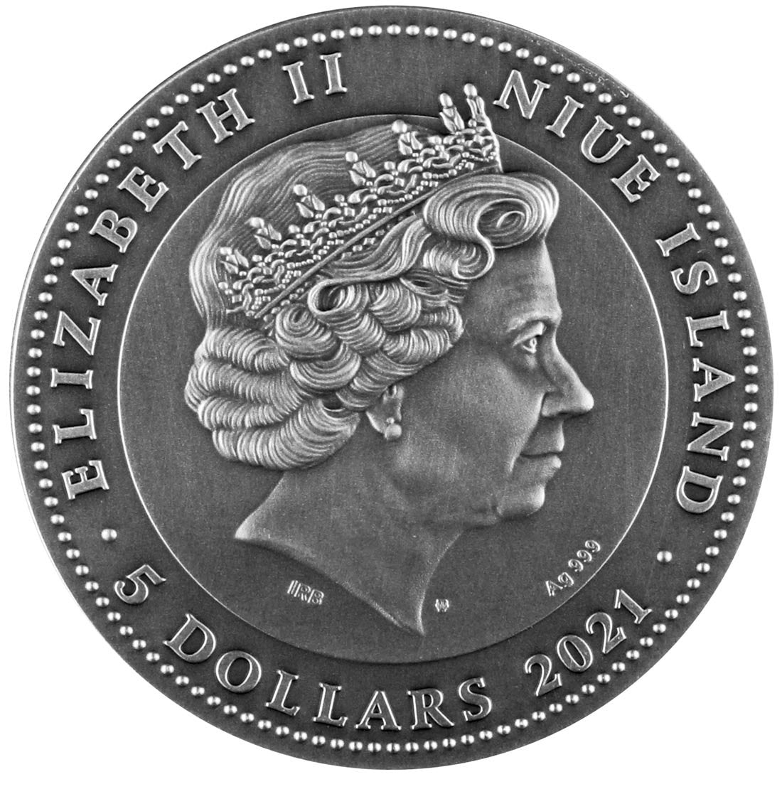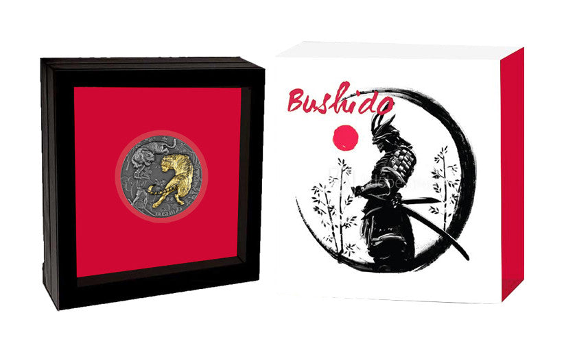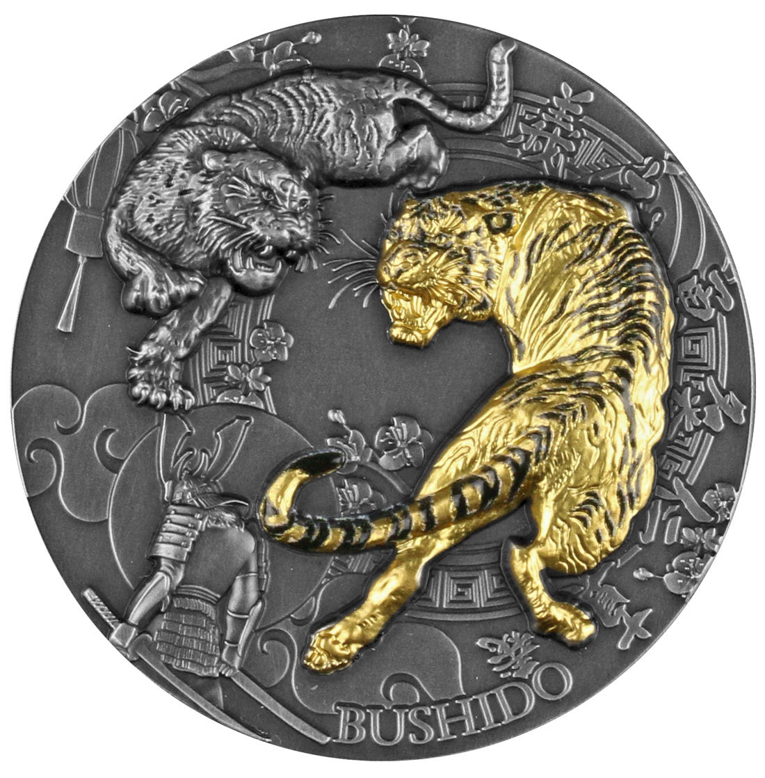 2021 Niue $5 2oz Silver Antique High Relief Gilded Coin - Bushido