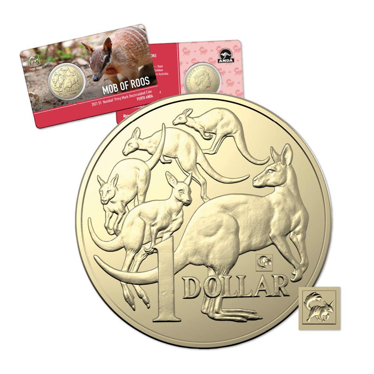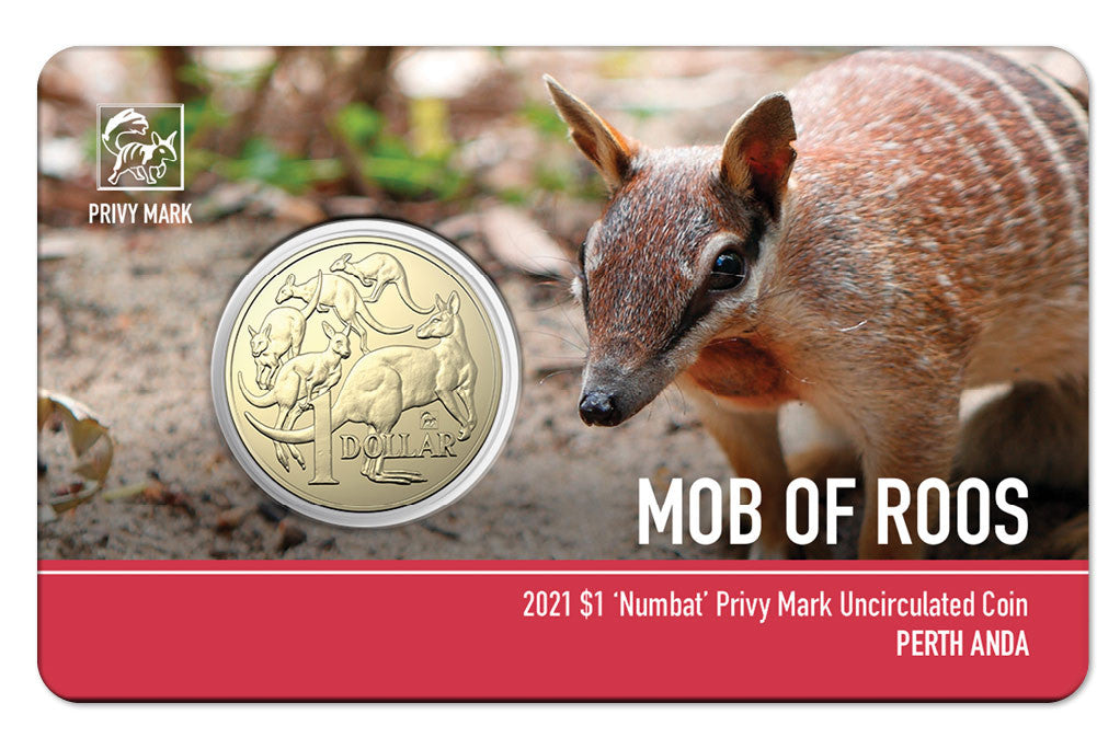 This exclusive 2021 Perth Money Expo ANDA Special from The Royal Australian Mint is highlighted by the famous Mob of Roos reverse design and features a unique Western Australia’s State Animal Emblem privymark – Numbat.