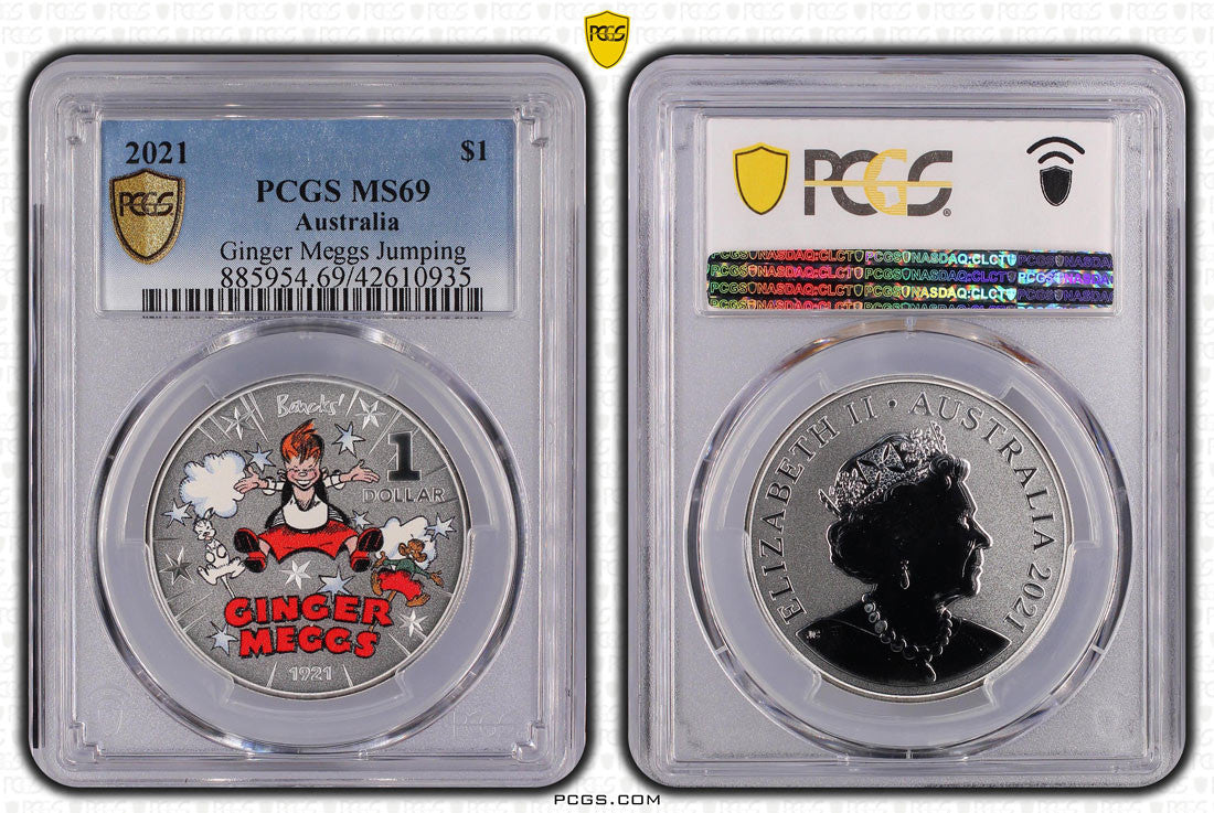 2021 Silver $1 Ginger Meggs Jumping PCGS MS69