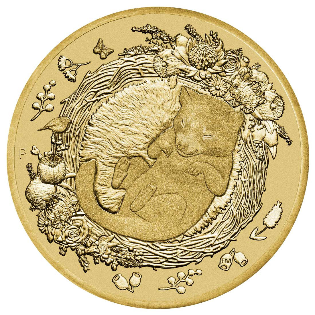 The coin’s reverse depicts a cute baby Tasmanian devil asleep in a fleece-lined nest surrounded by colourful Australian native flowers and wildlife. The Perth Mint’s ‘P’ mintmark also appears on the reverse.