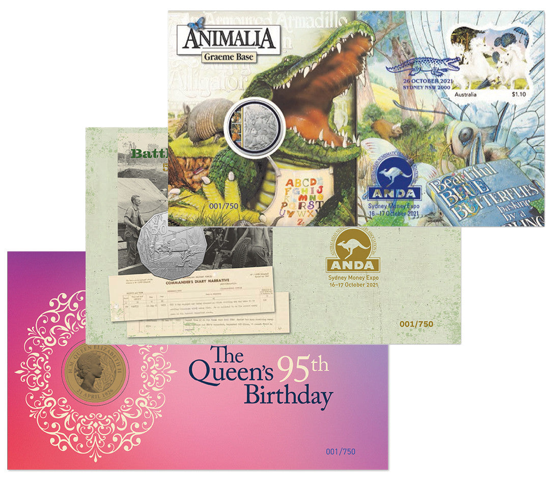 2021 Queen’s 95th Birthday ANDA Money Expo Sydney overprint and exclusive to ANDA postal numismatic cover is limited to just 750, featuring a pictorial envelope with the $1.10 The Queen Stamp and a coin from the Perth Mint