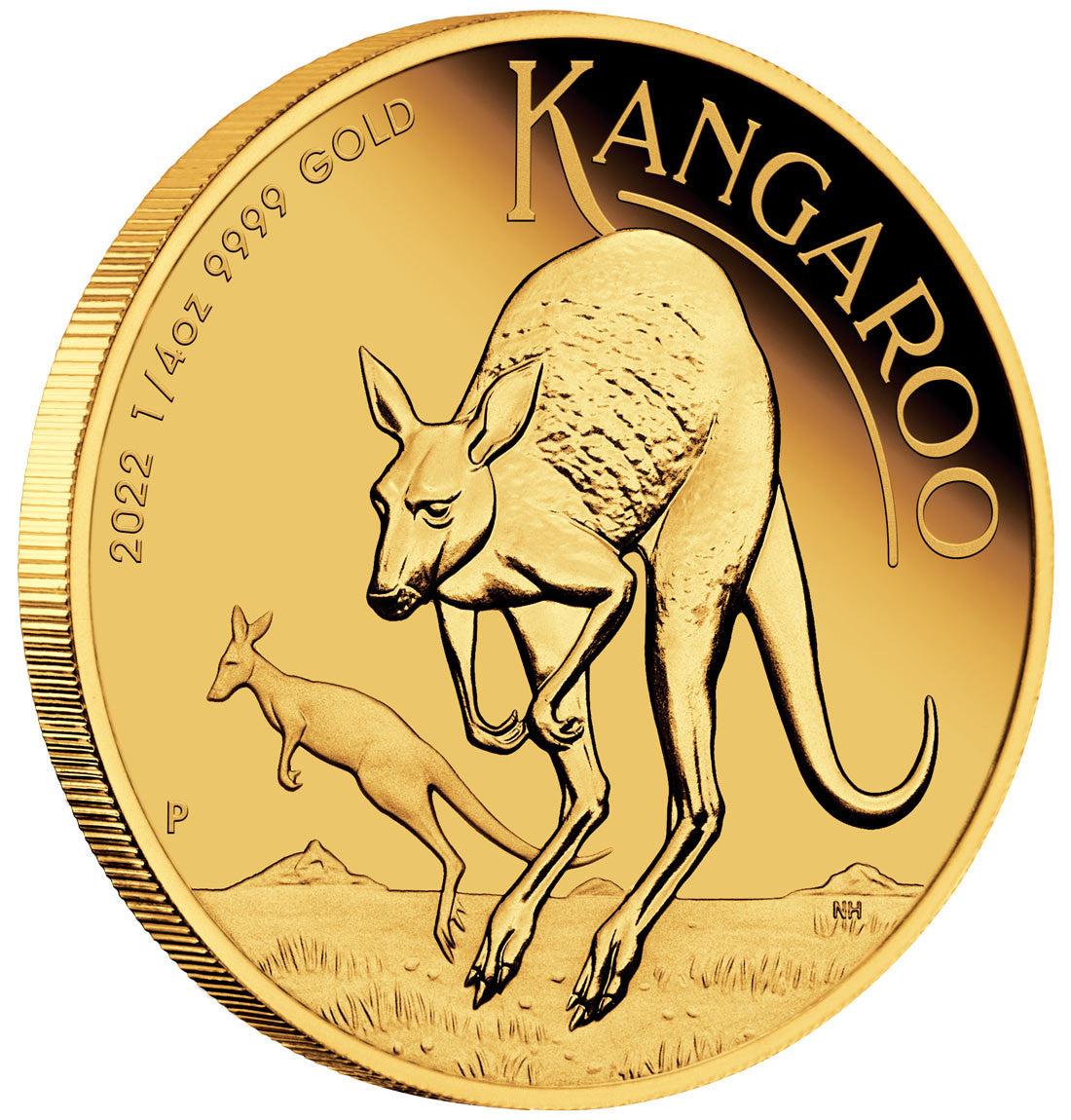 The Perth Mint will release no more than 500 of the Australian Kangaroo 2022 1/4oz Gold Proof Coin.