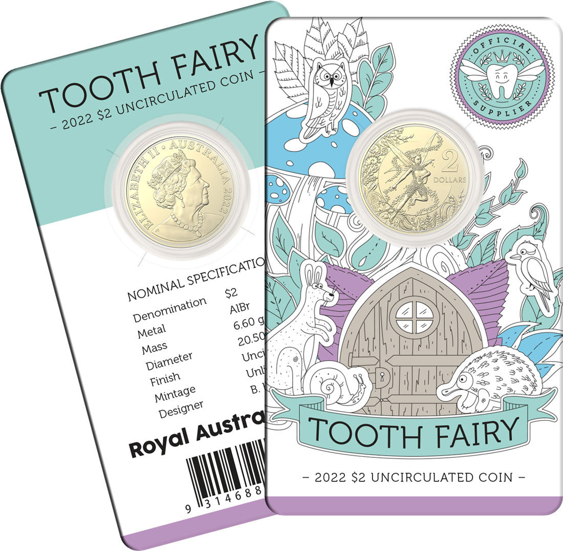 This Tooth Fairy Coin-in-Card celebrates the special relationship between the Tooth Fairy and the Royal Australian Mint, official supplier of coins to the Tooth Fairy in Australia. The Coin is intended as a special gift from parents, grandparents and others to children – to mark the occasion of losing baby teeth with a special keepsake Tooth Fairy coin.