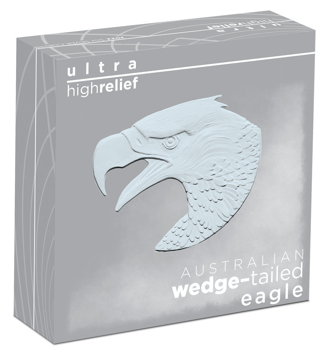 The Australian Wedge-tailed Eagle 2022 5oz Silver Proof Ultra High Relief Coin is struck by The Perth Mint from 99.99% pure silver and issued as legal tender under the Australian Currency Act 1965. No more than 1,000 of these coins will be released worldwide.
