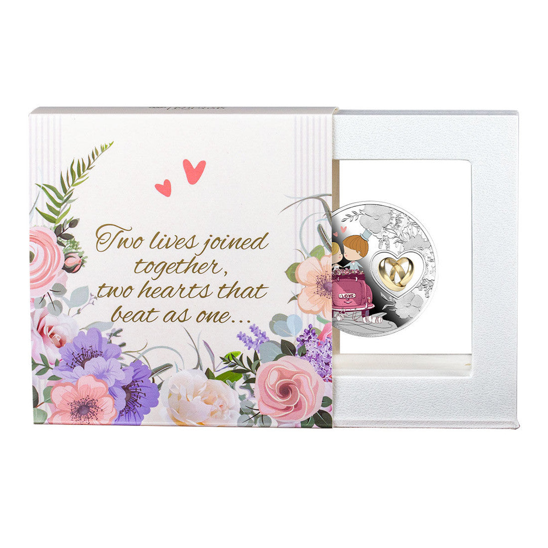 The “Wedding Coin” is a perfect gift that will surprise everyone and bring a smile to the bride and groom’s faces. It is a fairy-tale classic that expresses all the best wishes on a new path of life together. When looking for wedding gifts, it is worth getting something unconventional. This silver coin in an elegant case will make an unforgettable souvenir, bringing happiness and love to the young couple forever.