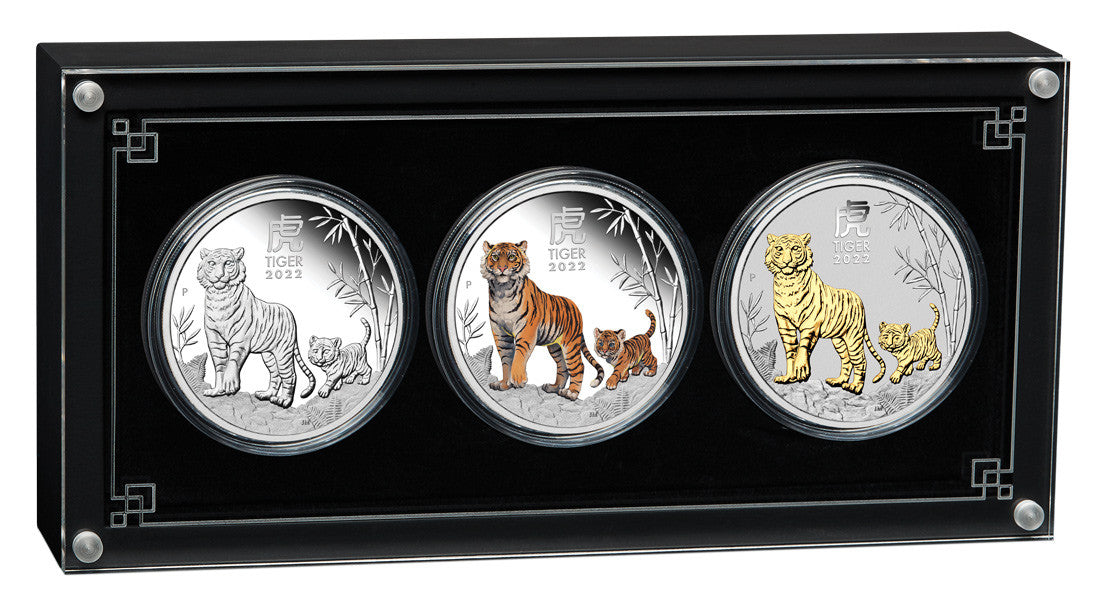 The Australian Lunar Series III 2022 Year of the Tiger 1oz Silver Trio has an issue limit of 1,500.