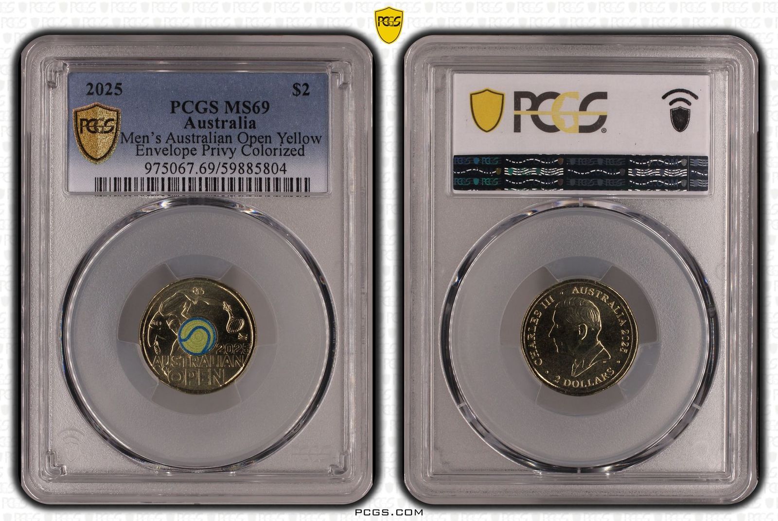 2025 Men's Australian Open Yellow Envelope Privy Colorized PCGS MS69