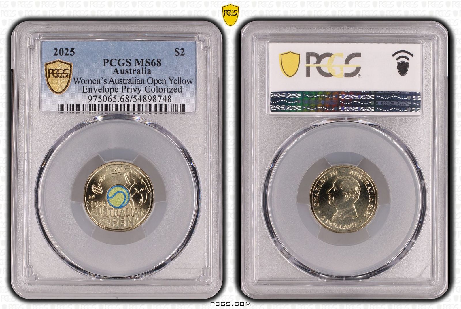 2025 Women's Australian Open Yellow Envelope Privy Colorized PCGS MS68