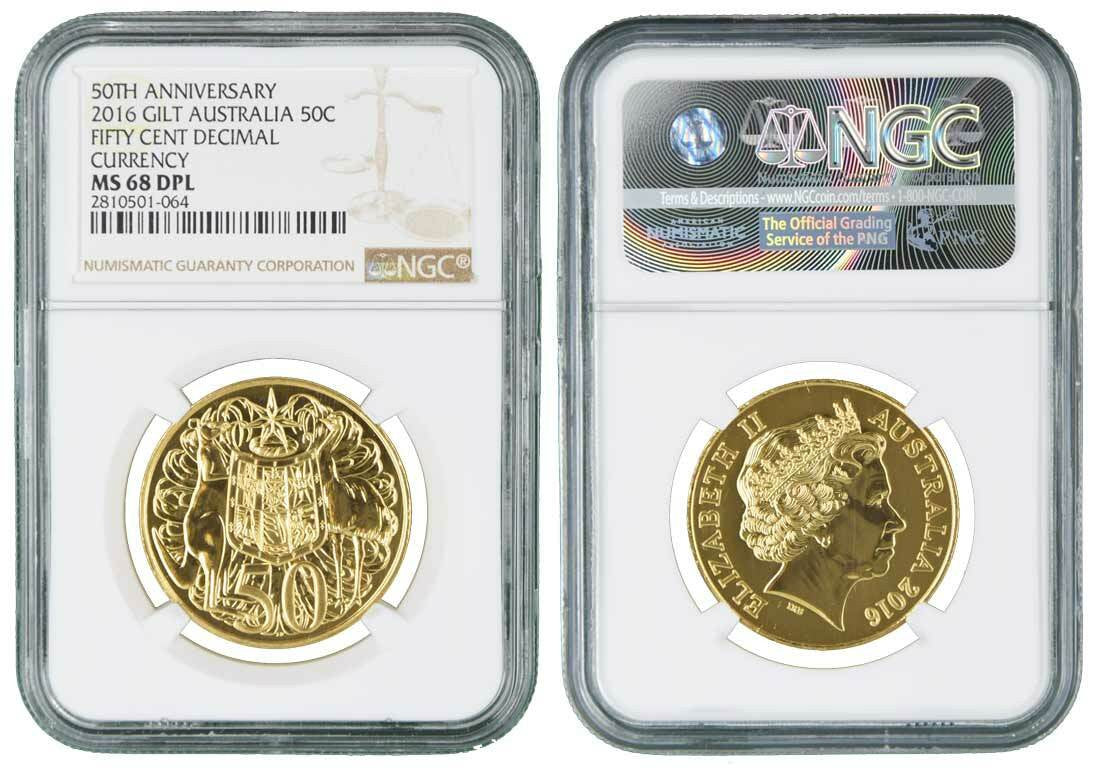 2016 Australian 50C Gold Plated 50TH Anniversary Decimal Currency NGC MS68 DPL