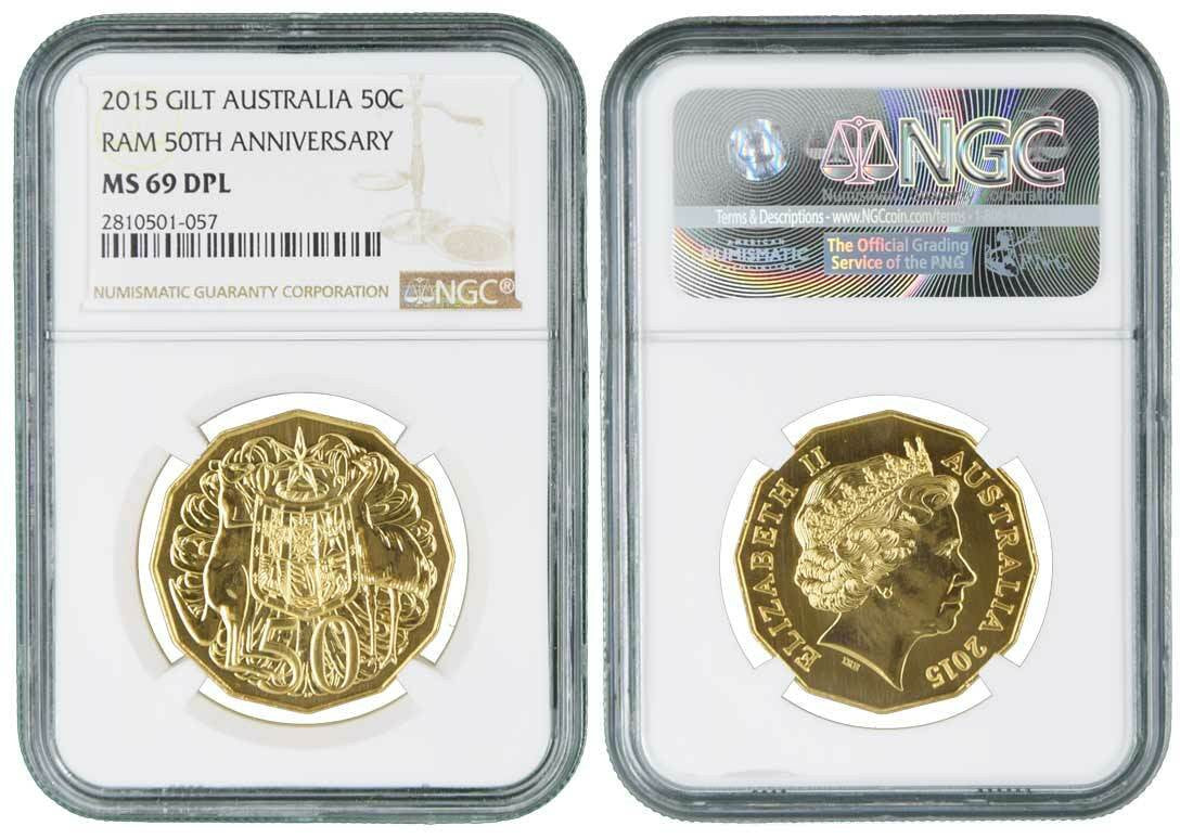 2015 Australian 50C Gold Plated RAM 50TH Anniversary NGC MS69 DPL