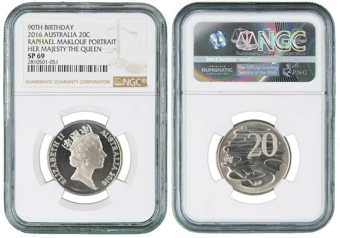 2016 Australian 20C 90TH Birthday Raphael Maklouf Portrait Her Majesty The Queen NGC SP69