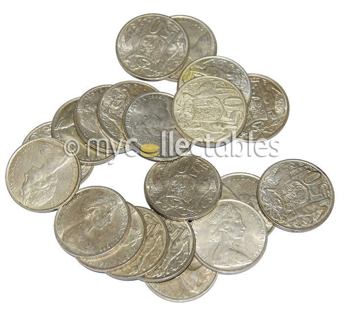 Australia 1966 Round Silver 50c - Lot of 10 - 80% Silver Bullion Coins