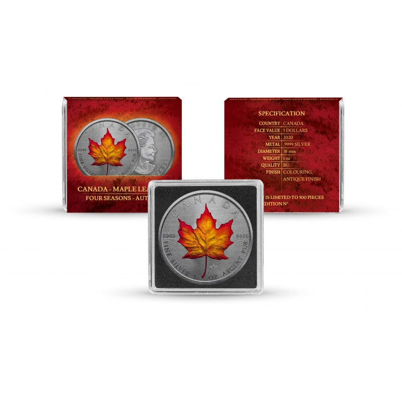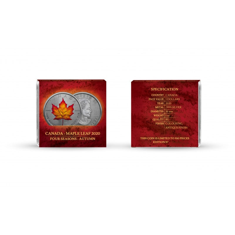 The "Canadian Maple Leaf Four Seasons" series is an ennobled adaptation of bullion coins. To emphasize the uniqueness of each season, coins were oxidized and covered with carefully selected colors.