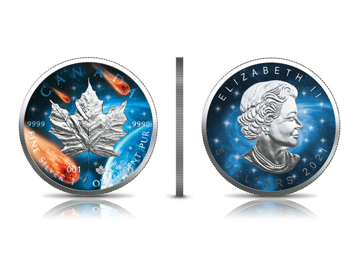 Canada 2021 Maple Leaf 1oz Ag .9999 BU Coin - Glowing Galaxy III