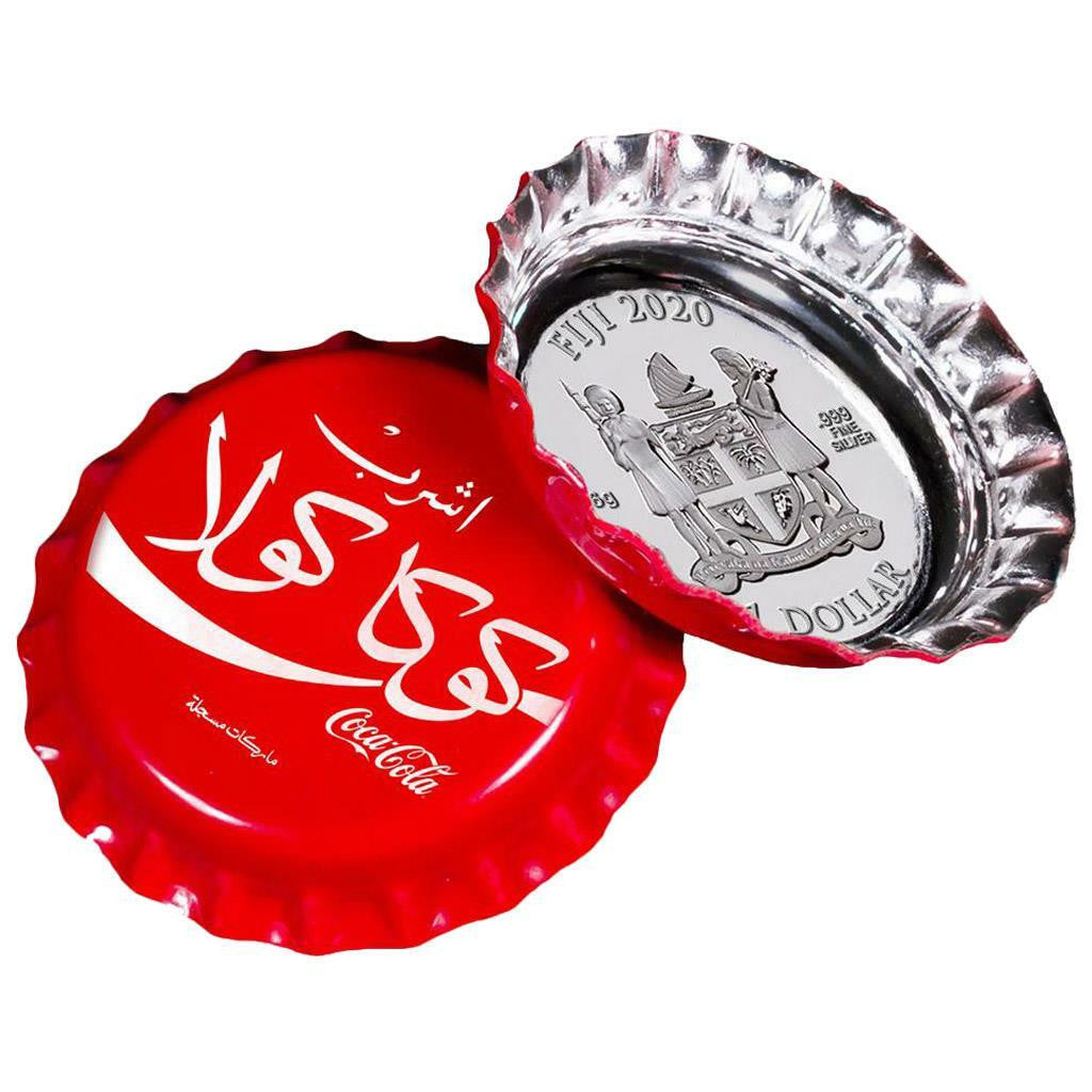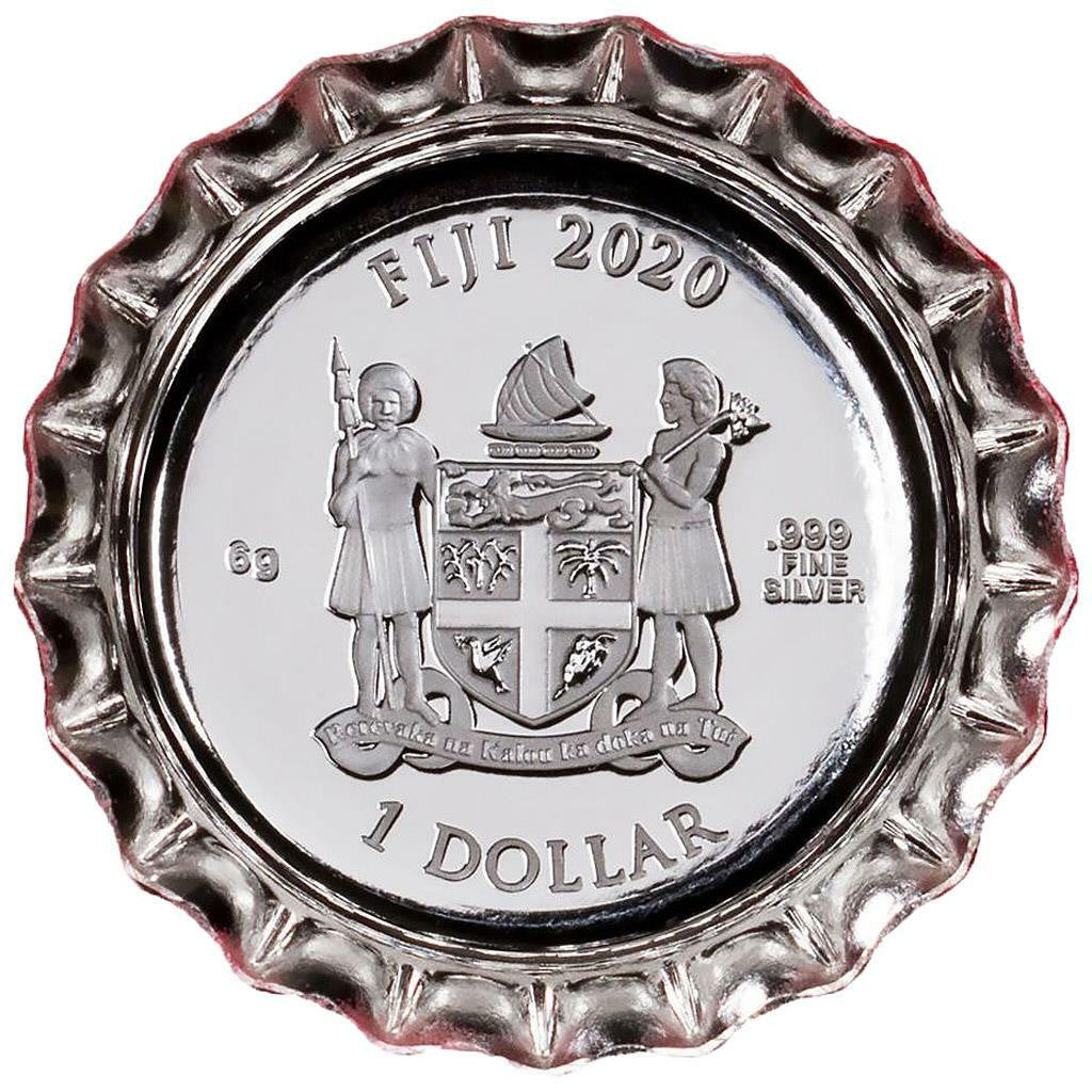 Minted with 6g of pure silver, each coin's unique “bottle cap” shape is an exacting tribute to the little red and white caps that sit atop the famous Coca-Cola contour bottle. No matter where you are in the world, just flip one over, and you'll discover the coin’s weight, purity, date of issue, and $1 legal-tender value.
