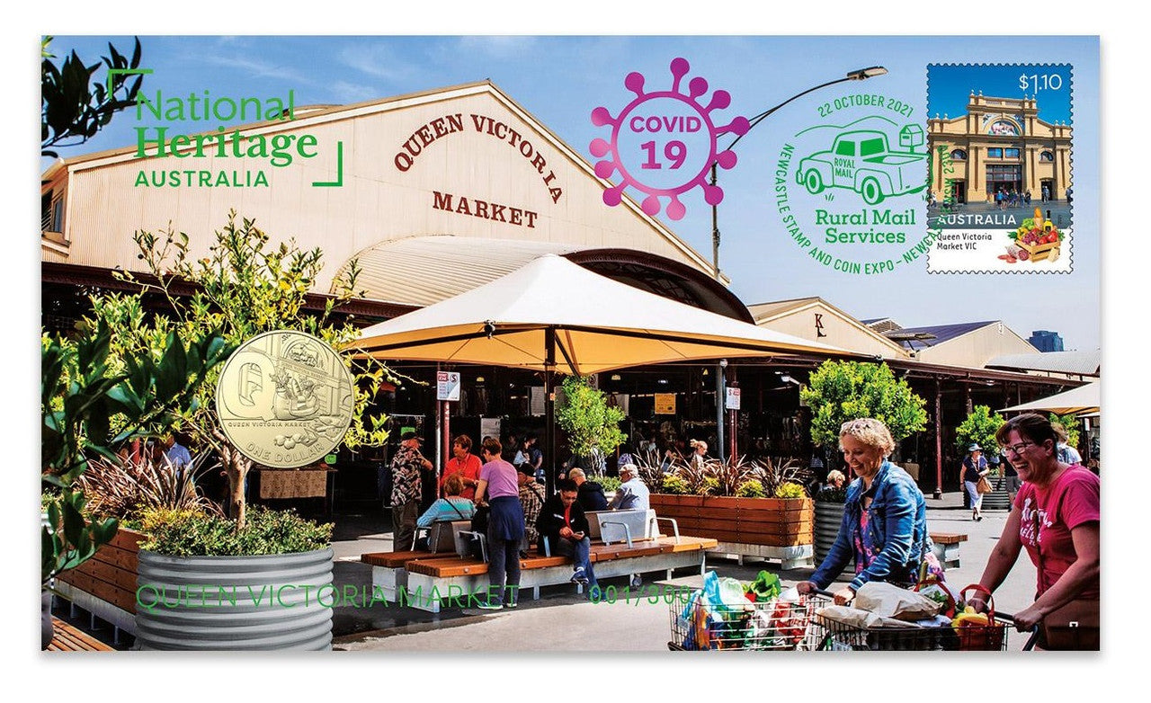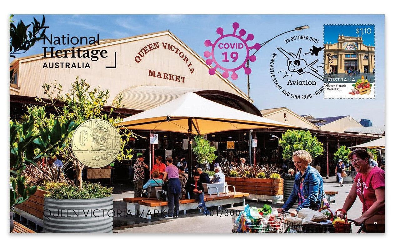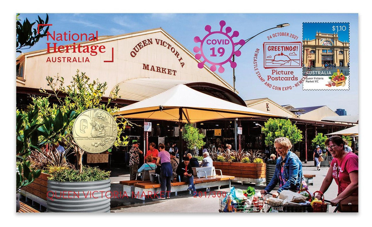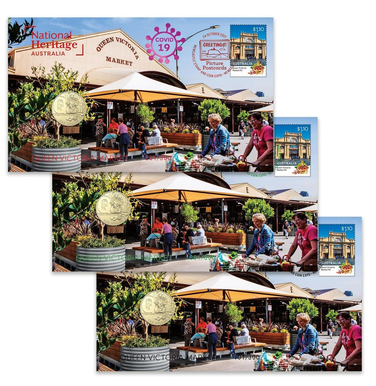 Set of three PNC’s featuring the Queen Victoria Market from the cancelled Newcastle 2021 Stamp and Coin Expo due to be held at the Newcastle Showground Exhibition Centre from Friday 22 to Sunday 24 October 2021. Owing to extended lockdowns due to the Covid-19 Pandemic the Expo was cancelled.