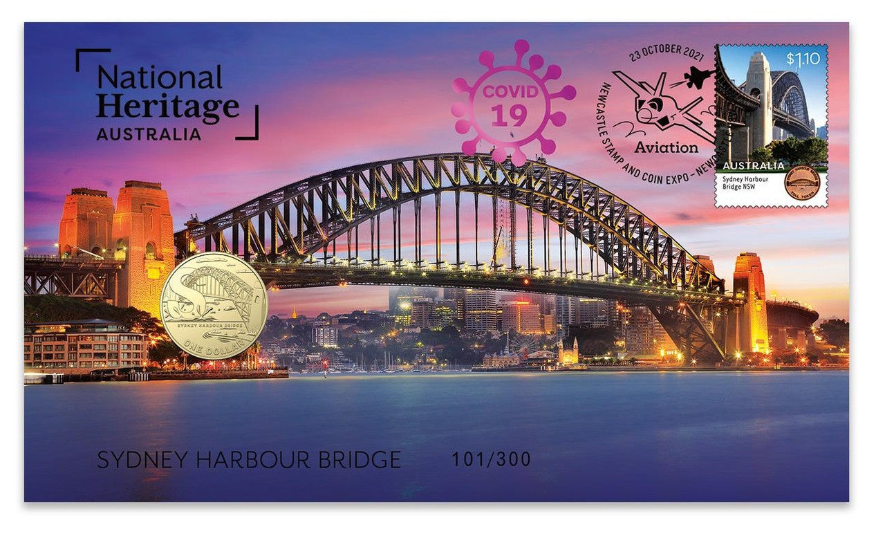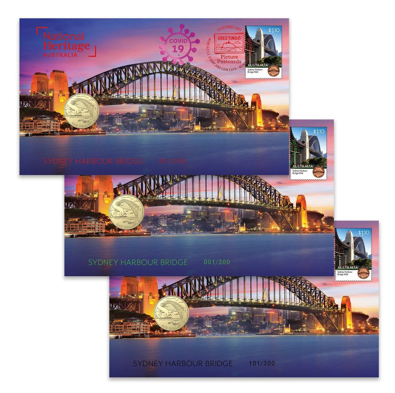 Set of three PNC’s featuring the Sydney Harbour Bridge from the cancelled Newcastle 2021 Stamp and Coin Expo due to be held at the Newcastle Showground Exhibition Centre from Friday 22 to Sunday 24 October 2021. Owing to extended lockdowns due to the Covid-19 Pandemic the Expo was cancelled.
