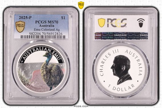 Perth Mint 2025-P Australia $1 Emu Colorized Ag PCGS MS70