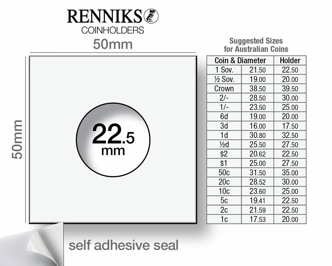 Renniks Coin Holders (Self-Adhesive) – 22.5mm - Pack of 50