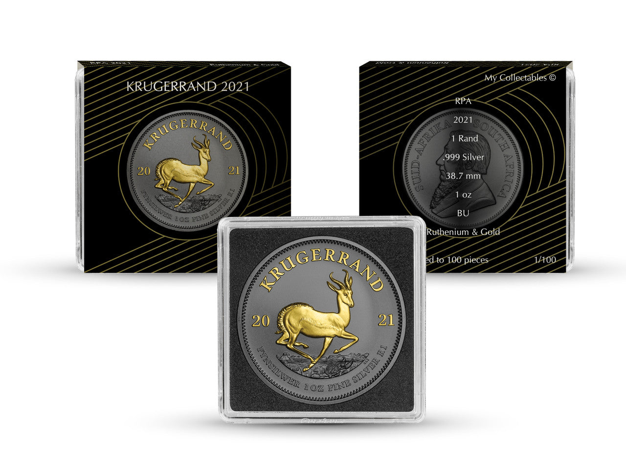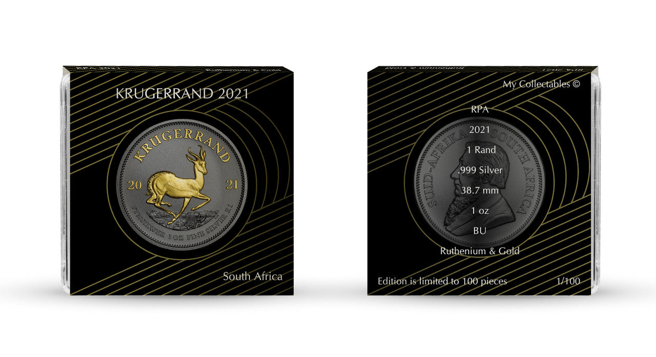 RPA 2021 - Krugerrand is a bullion coin issued by the South African Mint. Ruthenium and Gold is a version in which the gold and ruthenium are used to highlight the coin’s beauty. The use of various finishing techniques creates an amazing effect, giving the coin a gorgeous new look.
