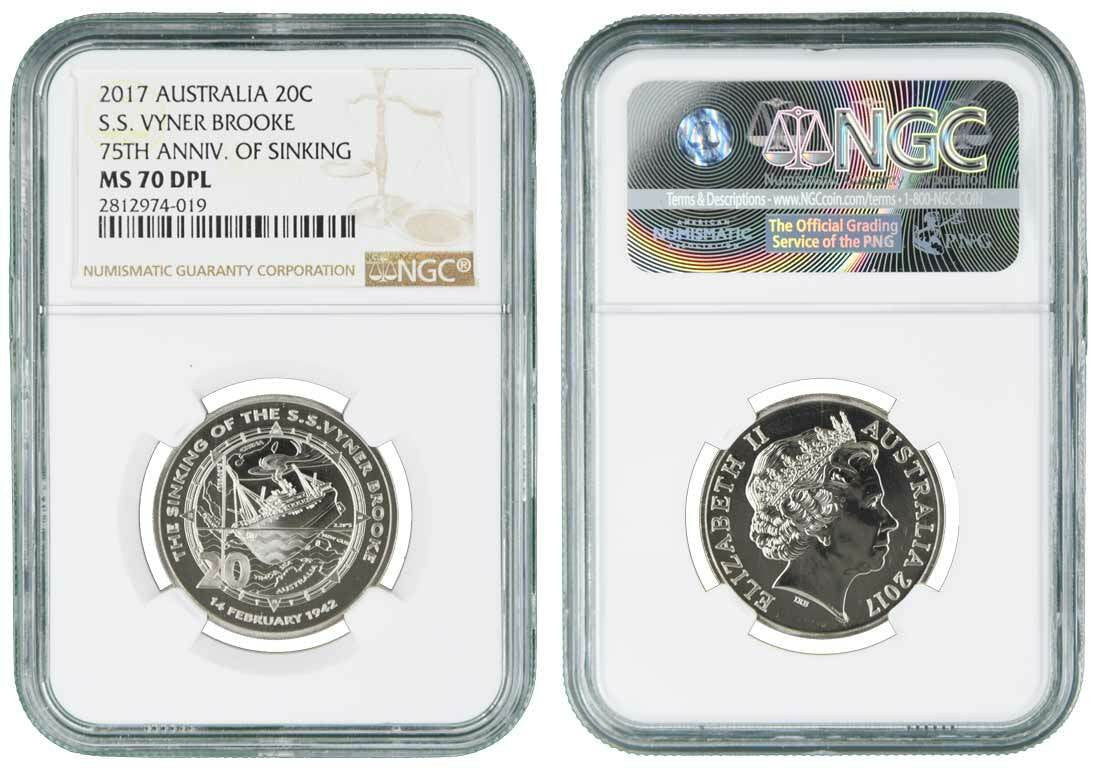 2017 Australian 20C S.S. Vyner Brooke 75TH Anniv. of Sinking NGC MS 70 DPL