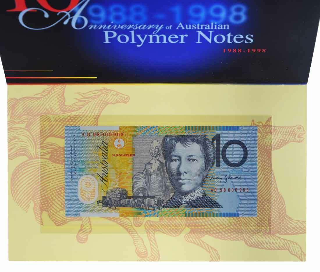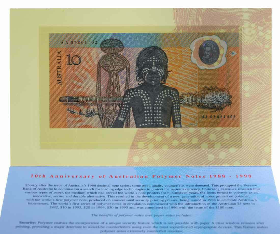 Ten Dollars 10 Years of Polymer Notes Premium Folder 1998 Johnston / Fraser & Macfarlane / Evans