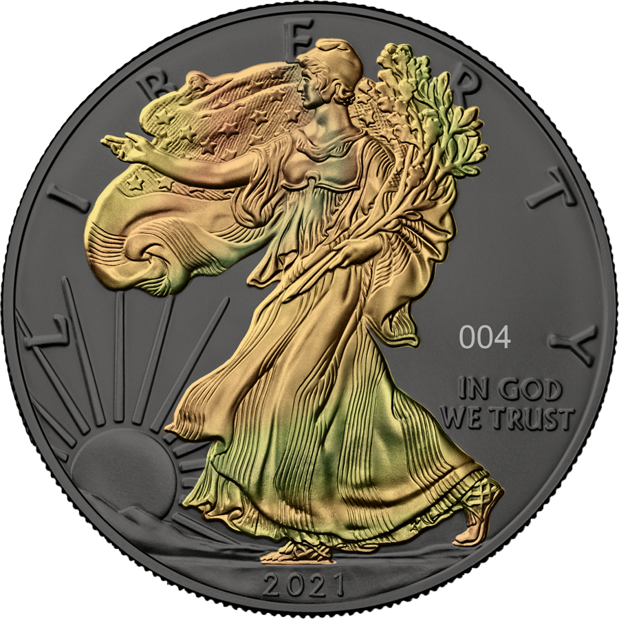 USA 2021 - American Eagle 1oz Silver .999 BU Coin - Golden Holo